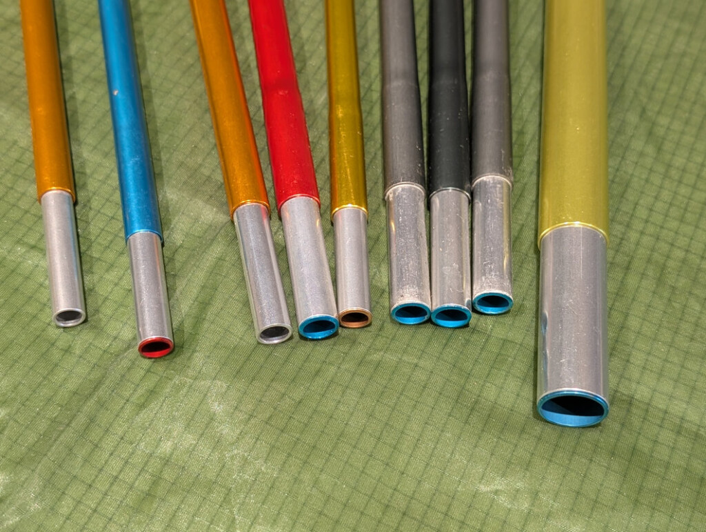 - Dimensions des sections : le diamètre des arceaux varient d’un modèle de tente à l’autre (8,5mm, 9,5 mm…). Plus le diamètre d’un arceau est élevé plus apriori la tente sera robuste (cela se vérifie notamment pour les tentes 4 saisons). Les sections d’arceaux sont étroitement liées aux matériaux et tissus utilisés (rapport avec les tensions/pressions exercées). Pour information, le diamètre le plus courant des arceaux sur les tentes de randonnée 3 saisons se situe entre 8,5 et 9 mm, comme c’est le cas chez de nombreux fabricants tels que MSR, Vaude, Big Agnes ou Nemo.