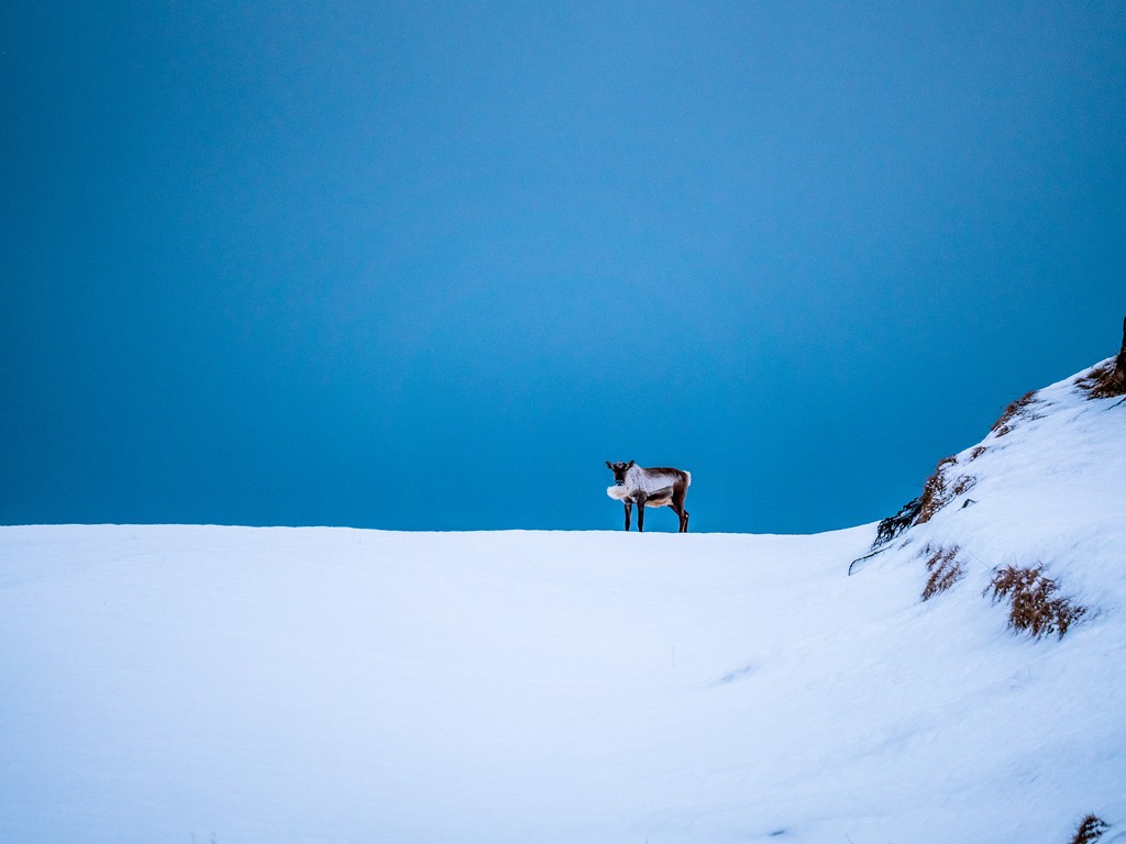 Sur notre chemin, nous avons rencontré de nombreux troupeaux de rennes sauvages, ainsi que de majestueux chevaux Islandais luttant contre les puissants vents venus du grand Nord. Le contraste entre ces animaux sauvages et ces plaines glacées rendait l’atmosphère irréelle et un tableau comme suspendu dans le temps.